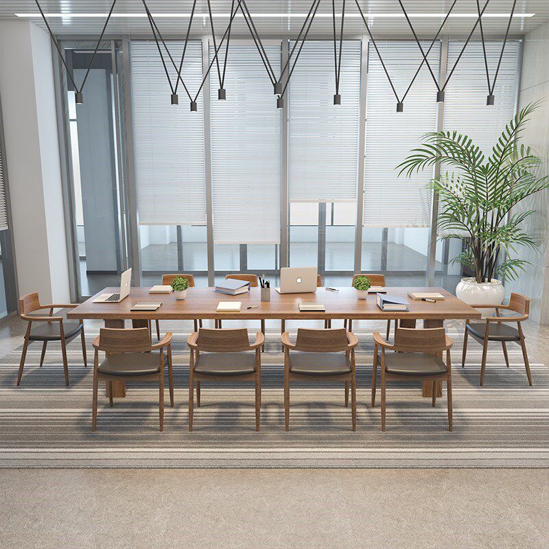 Nordic simple large conference table long table luxury solid wood workbench office reception negotiation training table and chair combination