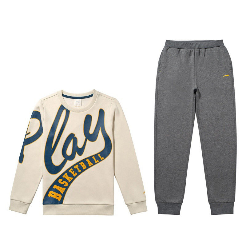 Li ning men's children's clothing 20 years winter new men's and women's children plus velvet warm round neck thick cotton T set YWEQ031