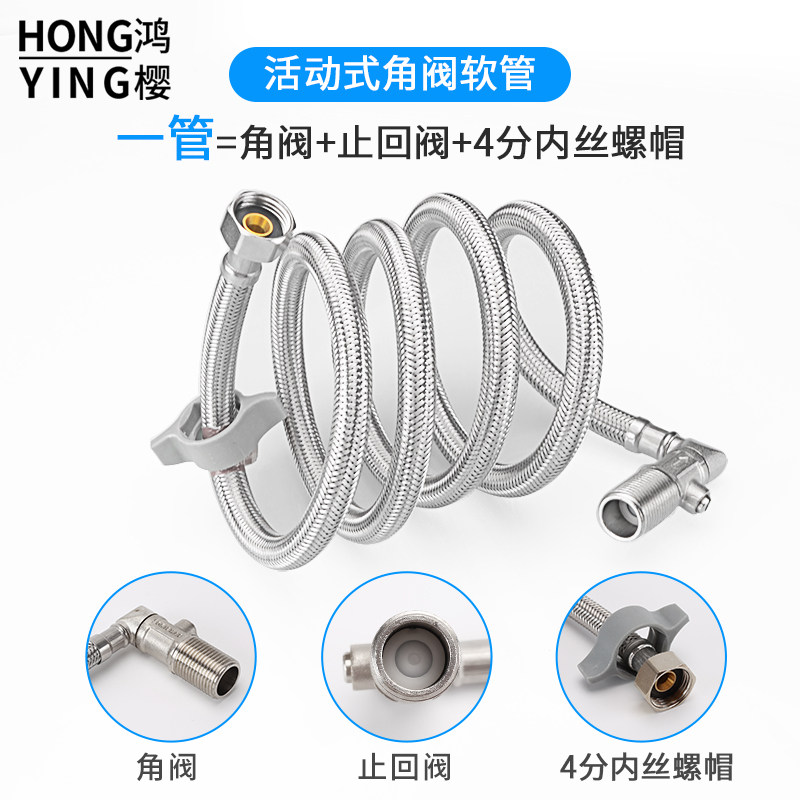 304 stainless steel vegetable basin hot and cold braided water inlet hose 4 points elbow angle valve water heater toilet explosion-proof pressure pipe