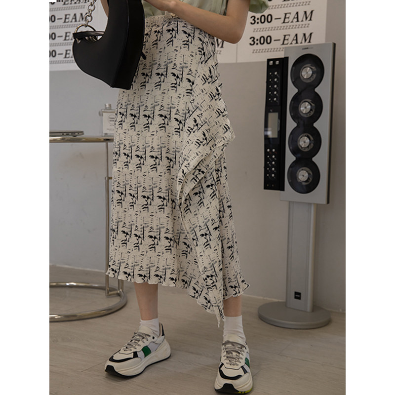 (Spot) Quanzhitian 21 female summer silhouette abstract printing irregular oblique baby bag skirt high waist long skirt