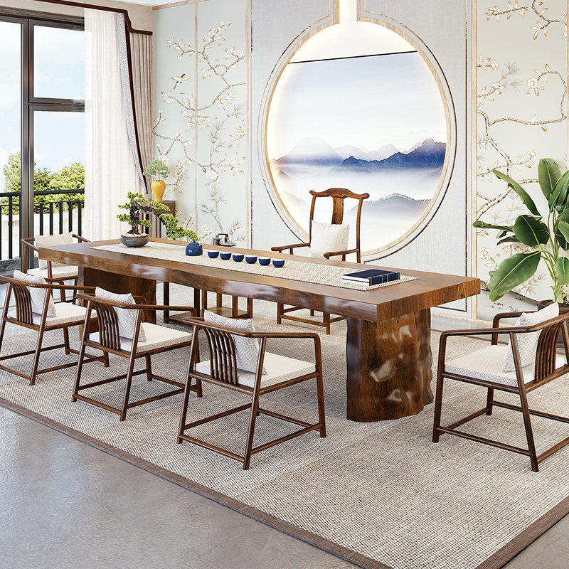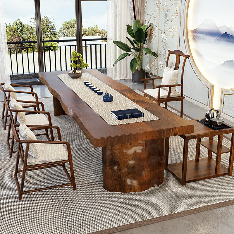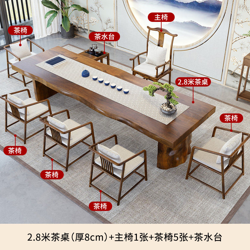 Solid wood board tea table and chair combined new Chinese style tea table Zen tea table office Kung fu tea log tea table