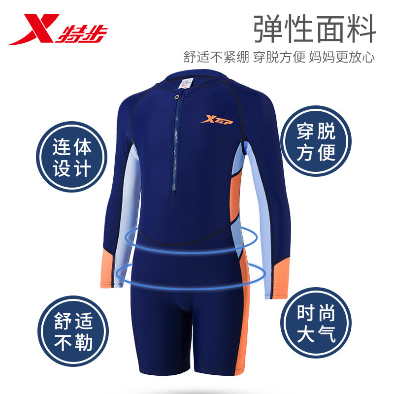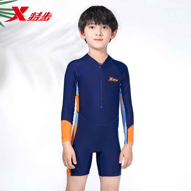 XTEP children's swimsuit summer boys middle and large children's one-piece long-sleeved 2021 new baby sunscreen quick-drying hot spring swimsuit