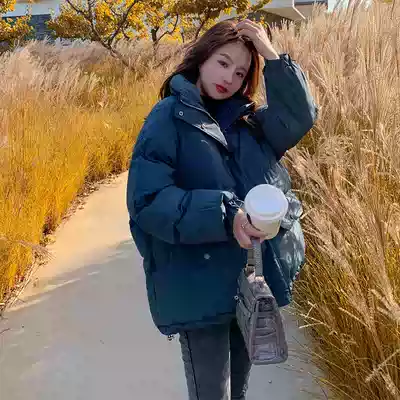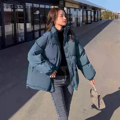 2021 Winter Korean Net red slim short cotton coat female loose student bread clothing Joker stand collar cotton coat