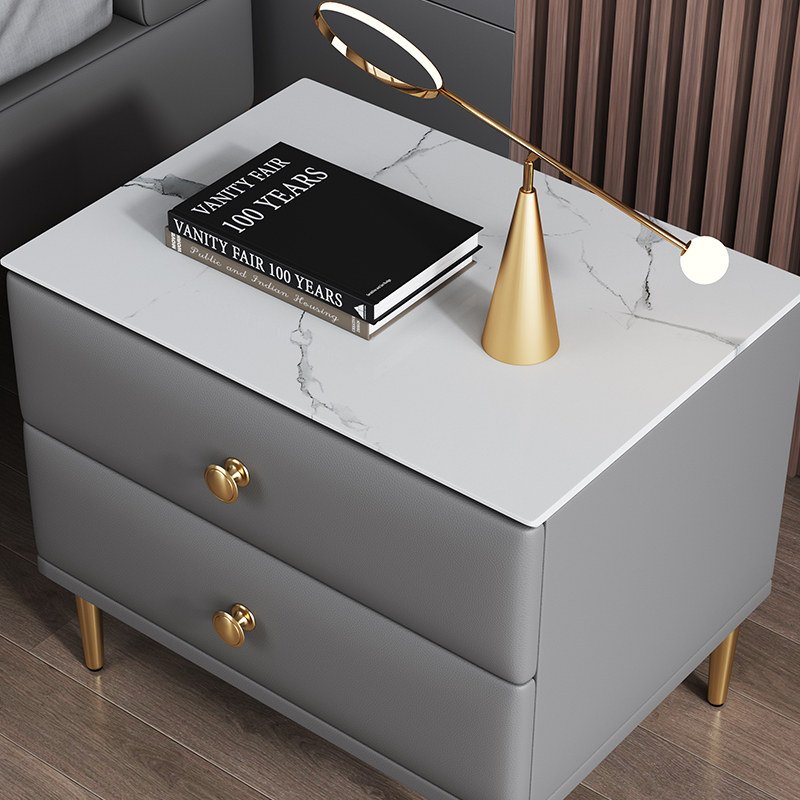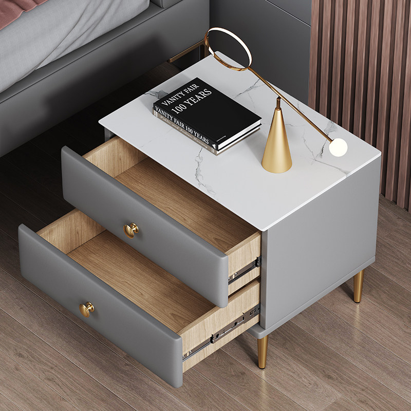 Light luxury simple modern small apartment bedside table household rock board leather wood bedroom bedside mini locker