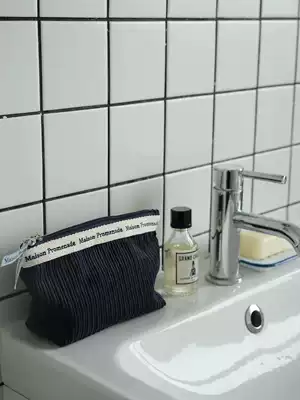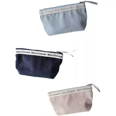MaisonPromenade Corduroy solid color striped cosmetic bag soft waxy cute carry-on change storage bag