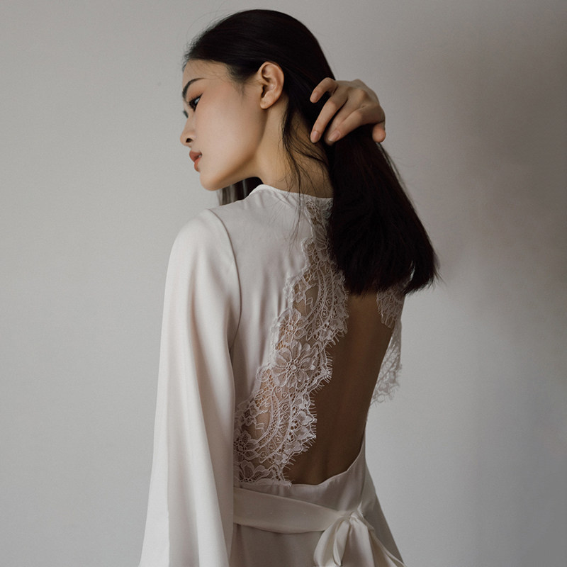 Beyond the white bridal dressing gown 2021 summer designer new silk sexy lace wedding pajamas nightgown women
