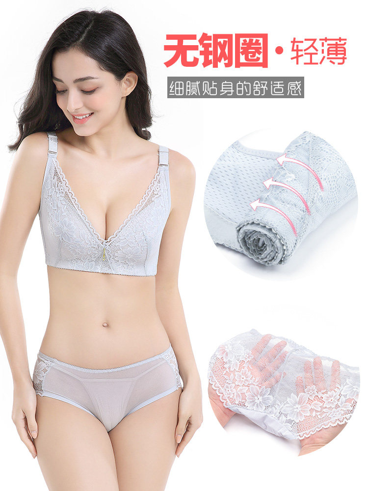 Dianfen ultra-thin lingerie woman no steel ring fat mm large size for gathering anti-sagging large chest display small underwear suit thin