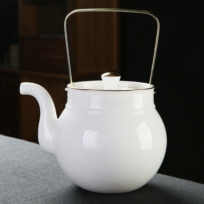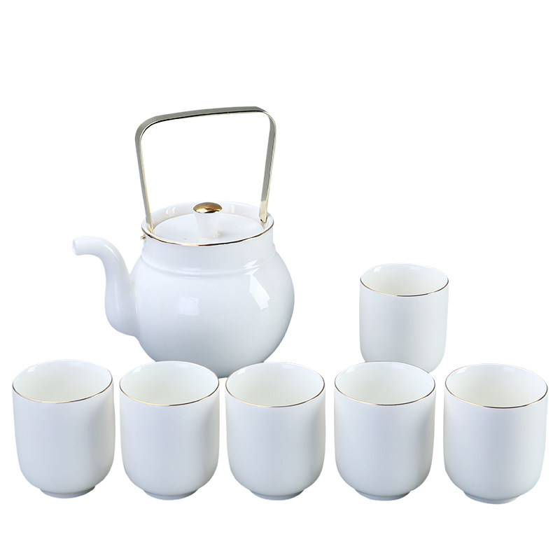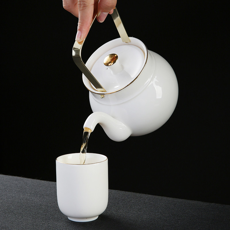 Shea Butter Jade Porcelain Sun Style Tea Set Group Home Office Large Lifting Beam Teacup Tea Cup Kongfu Tea With Large Capacity Six Cups