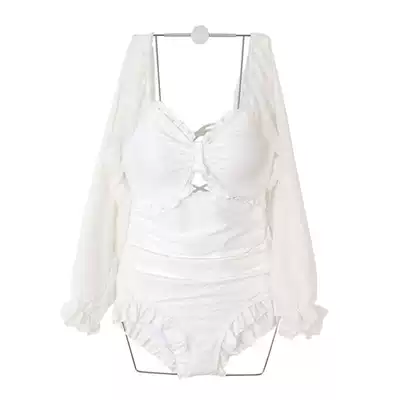Swimsuit female summer fairy fan 2021 new one-piece small chest gathered long-sleeved conservative white slim-fitting thin swimsuit