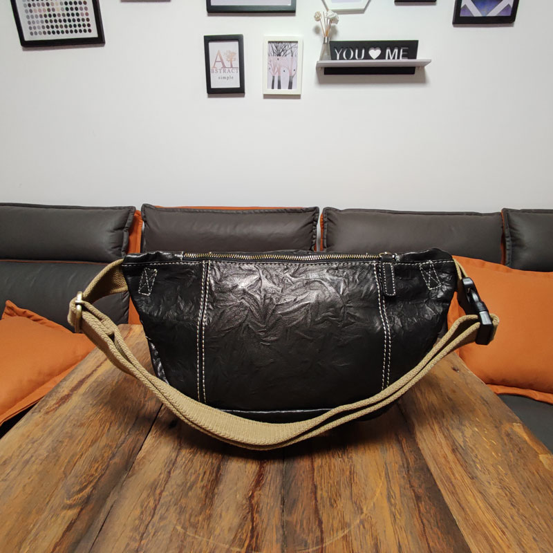 Leather Chest Bag Men's Bag Old Retro Trendy Shoulder Bag Multifunctional Korean Style Waist Bag Vegetable Tanned Cowhide Backpack Messenger Bag