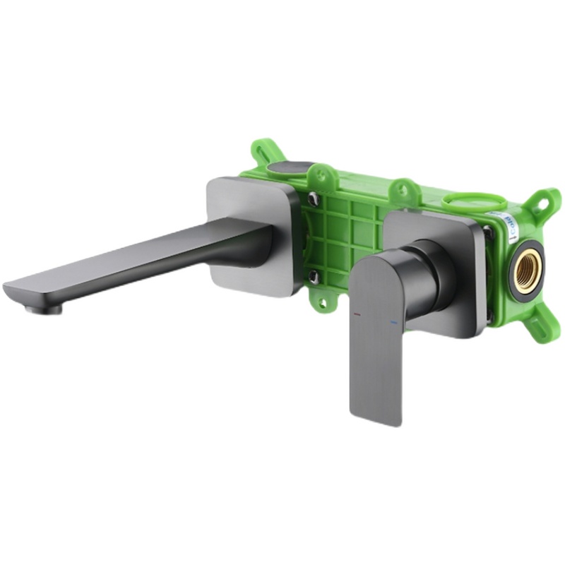 Nordic black dark copper basin faucet cold and hot bathroom stage pot into wall-style gun gray tap