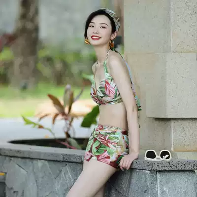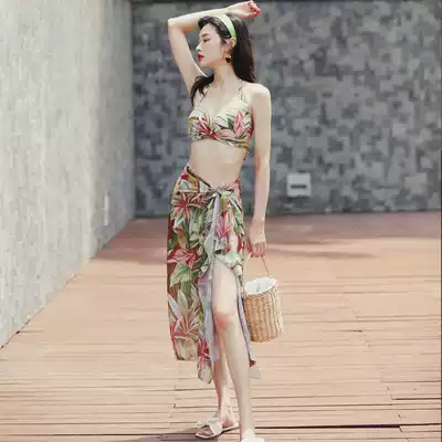 Bikini three-piece swimsuit female summer steel support small chest gathered beach Beach seaside two-piece sex catch hot spring high waist flat corner