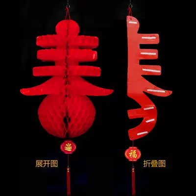 Spring Festival New Year Spring Lantern Plastic Lantern New Year Festival Festive Decoration Folding Red Lantern Hanging