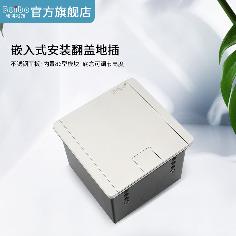 buibo reibo flat open stainless steel full copper ground socket multimedia 86 socket adjustable bottom box hide outgoing line