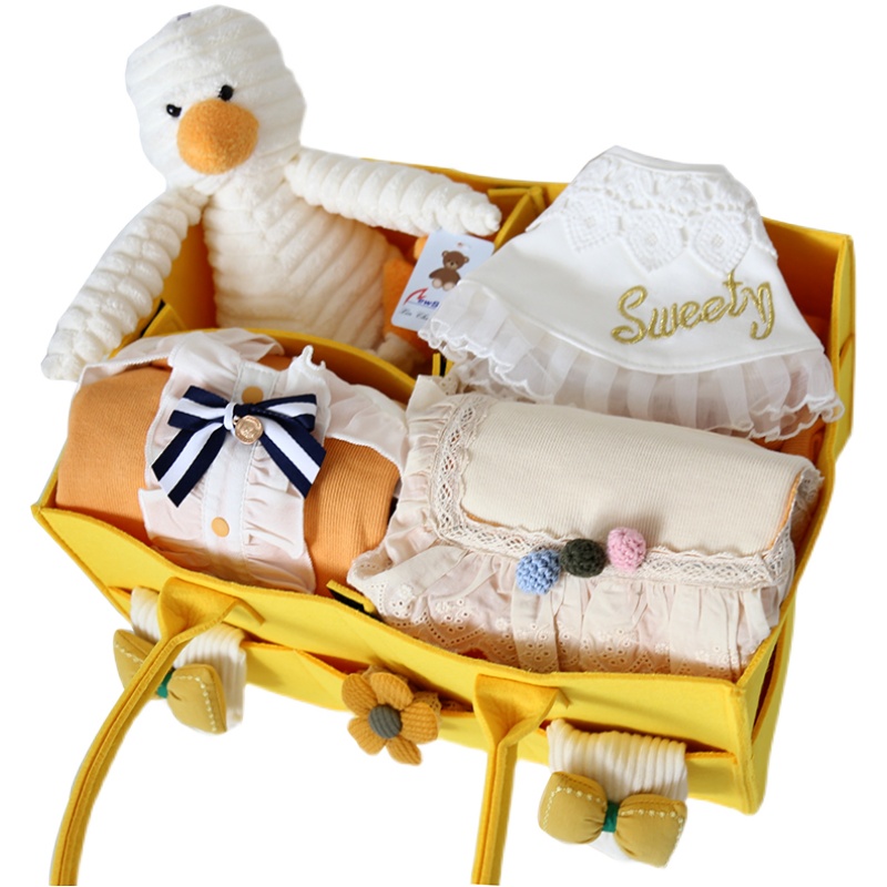 Newborn baby gift box male and female baby fall pure cotton clothes suit foreign air gift bag full moon 100 days old gift-Taobao