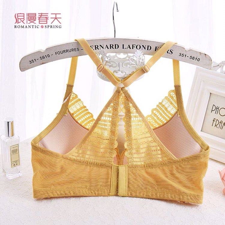 Romantic spring new baby cotton gathered sexy lace front buckle beautiful back bra 25010101 comfortable