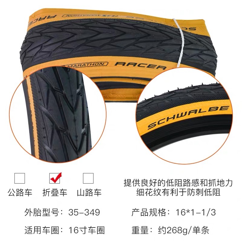 Shiwen SCHWALBE MARATHON RACEER small cloth retro yellow edge outer tire 16 inch 349 anti-stab outer tire-Taobao