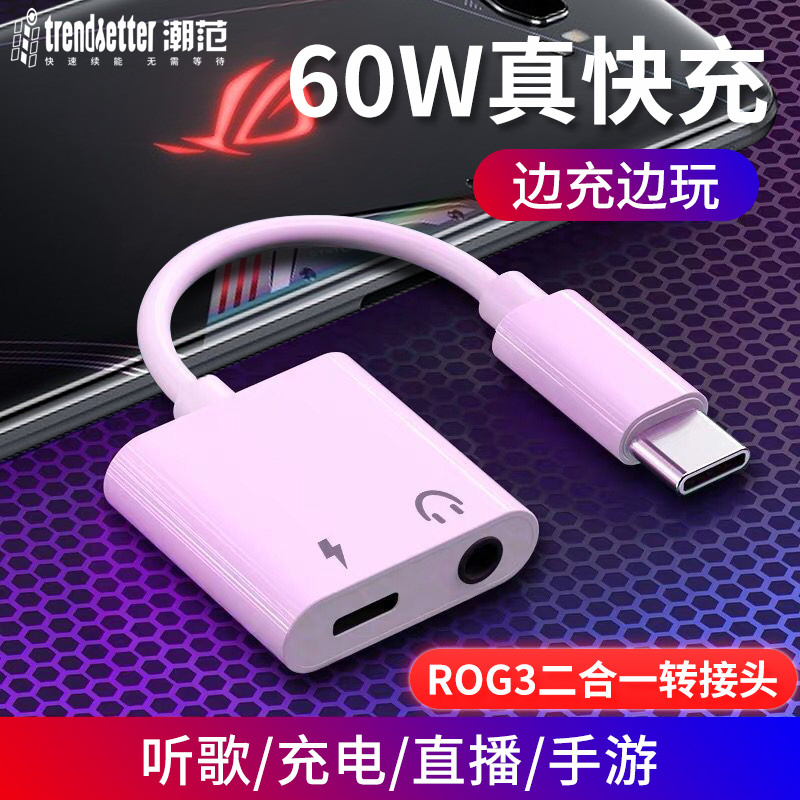 Applicable Huashuo rog3 5 headphone adapter two-in-one PD60W fast-charging original assembly converter digital audio DAC switching line