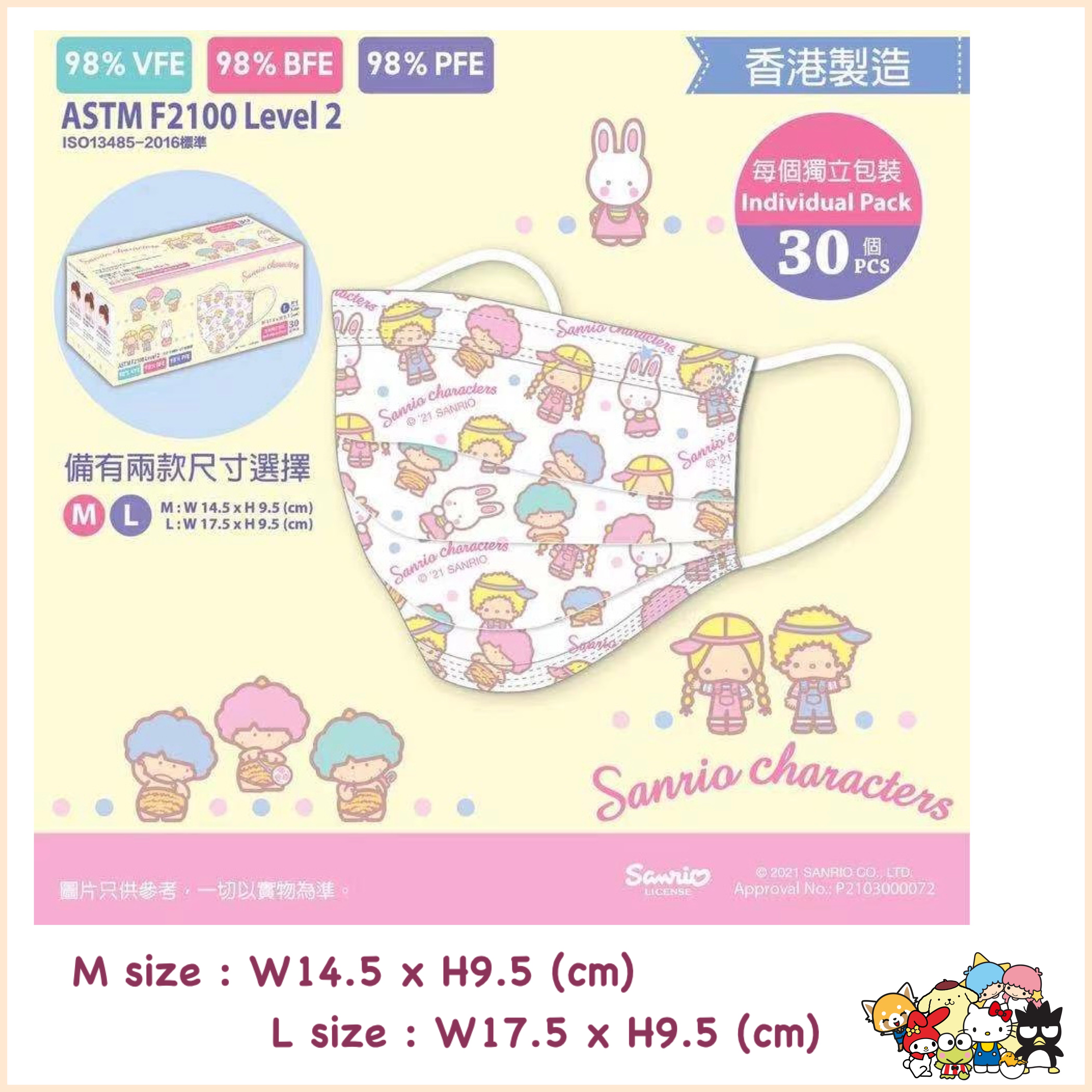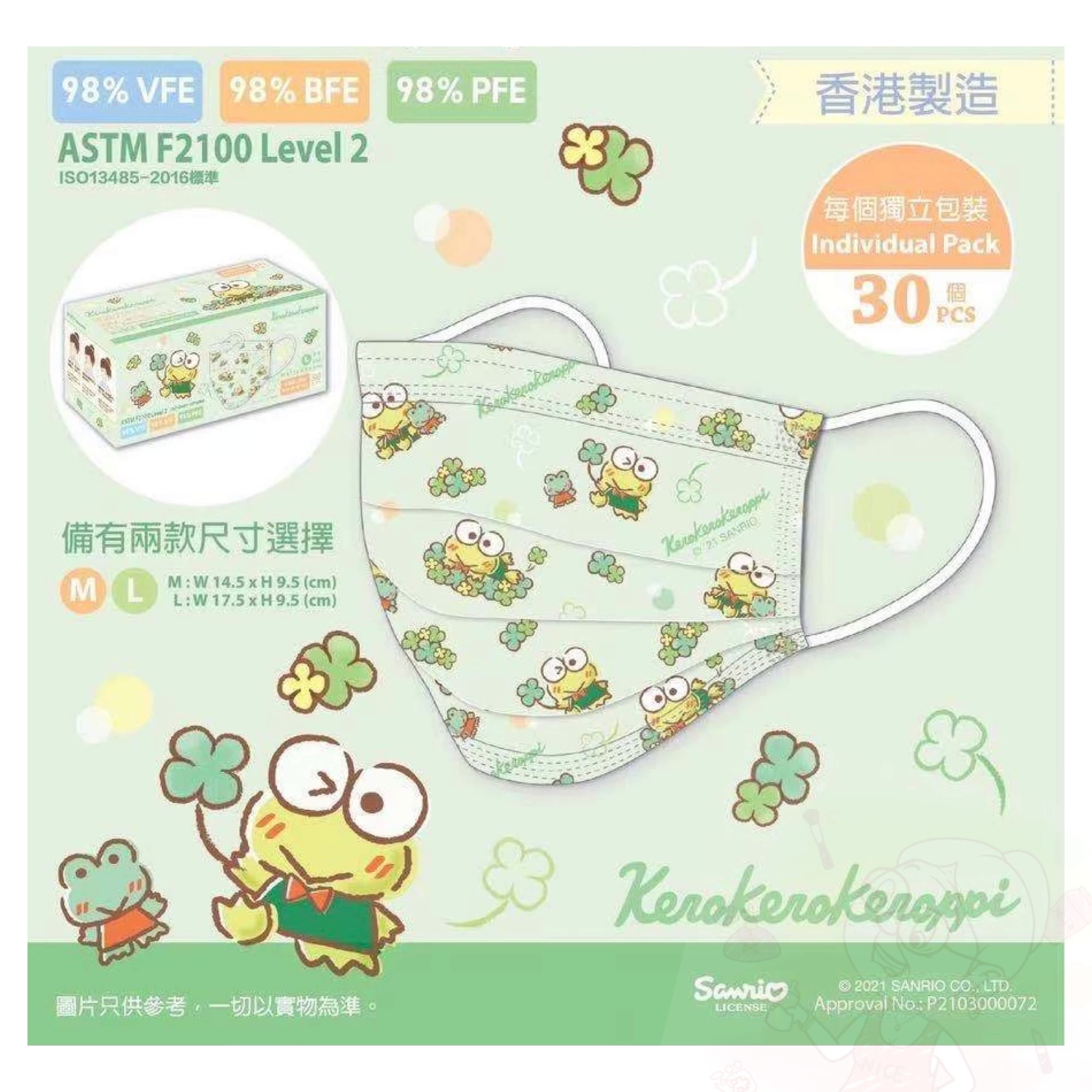Hong Kong Made in Sanrio Three Lull Terns Merleti Great Eye Frog Pudding Dog Toddler Toddler Toddler Child Adults Mask 30