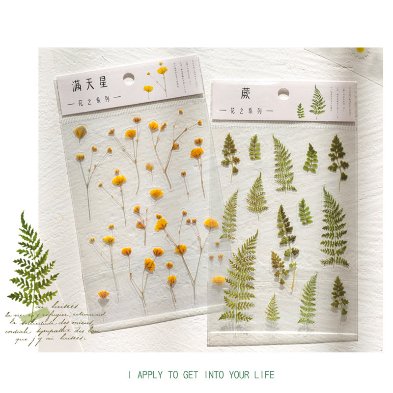 The chick is not two Eucalyptus dried flowers and green plants flat up stickers small fresh packaging hand account DIY decoration material stickers
