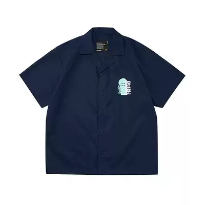 BOARDHEAD X ROARINGWILD Navy logo print barge collar short sleeve shirt