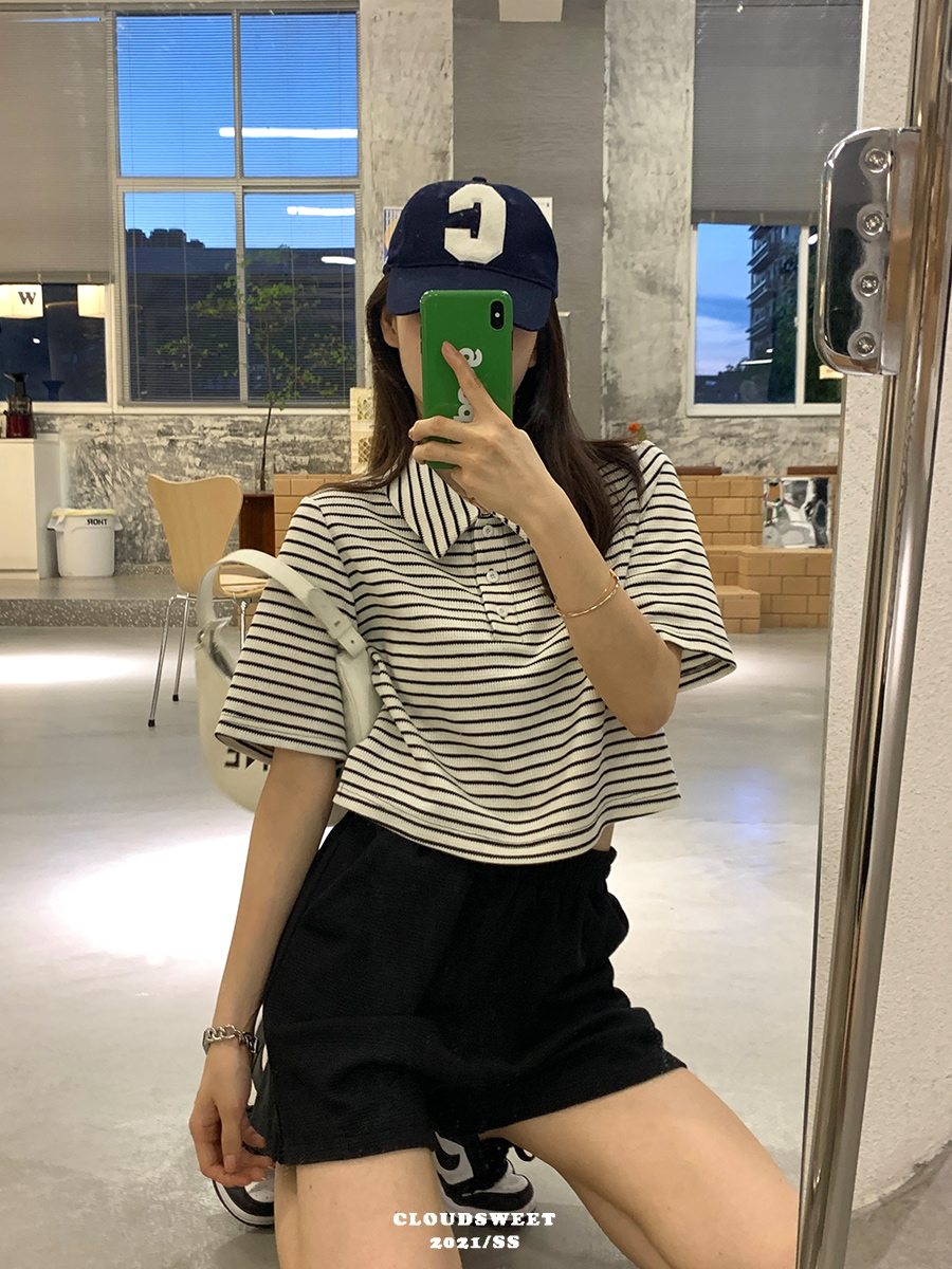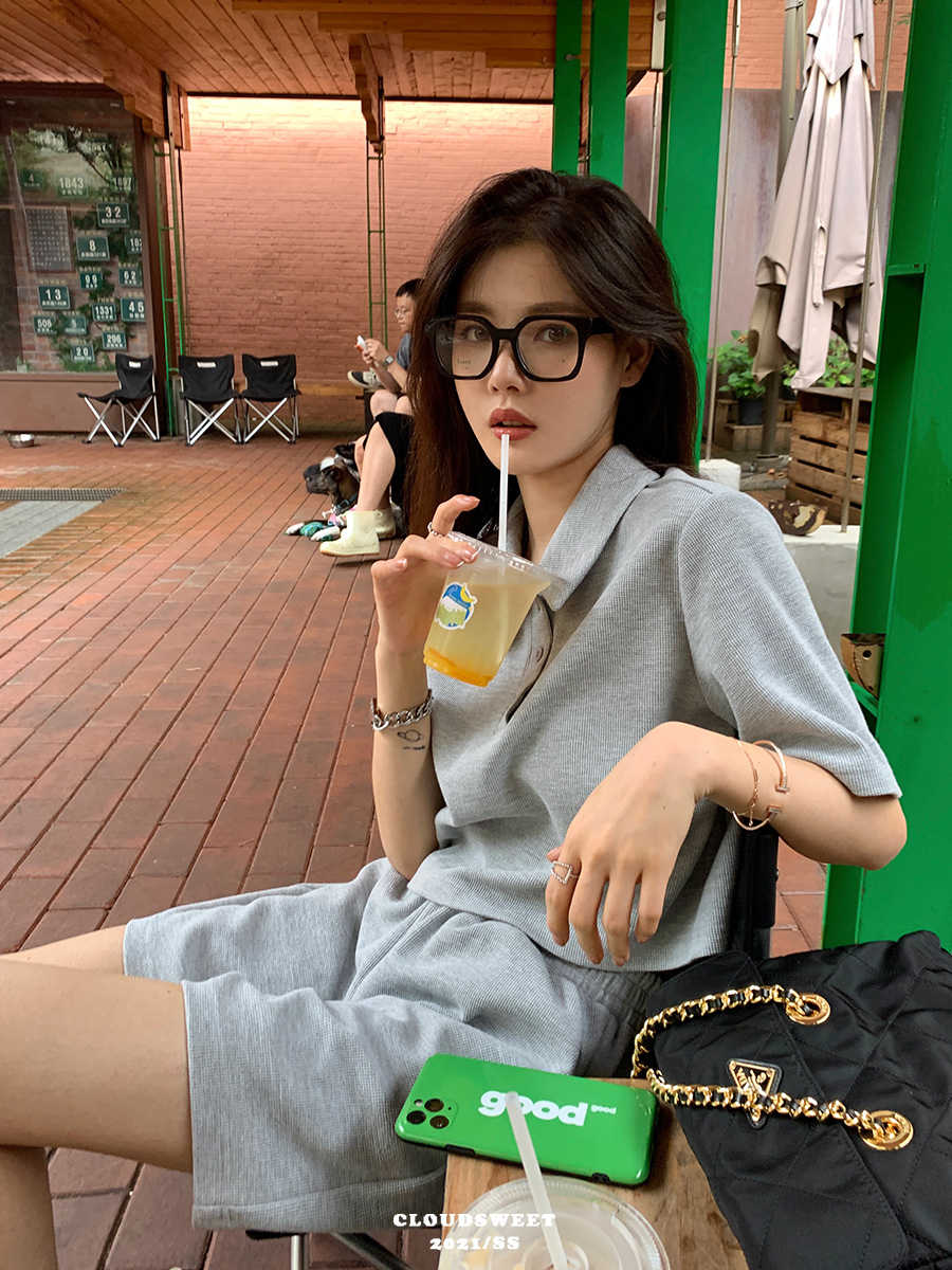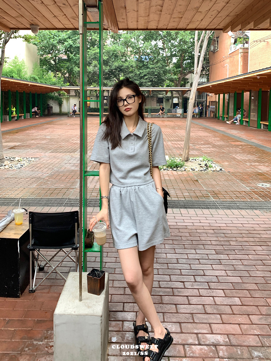 CloudSweet Athflow Wind PoloGirlish~Simply Huata Waffger T-shirt Short Set