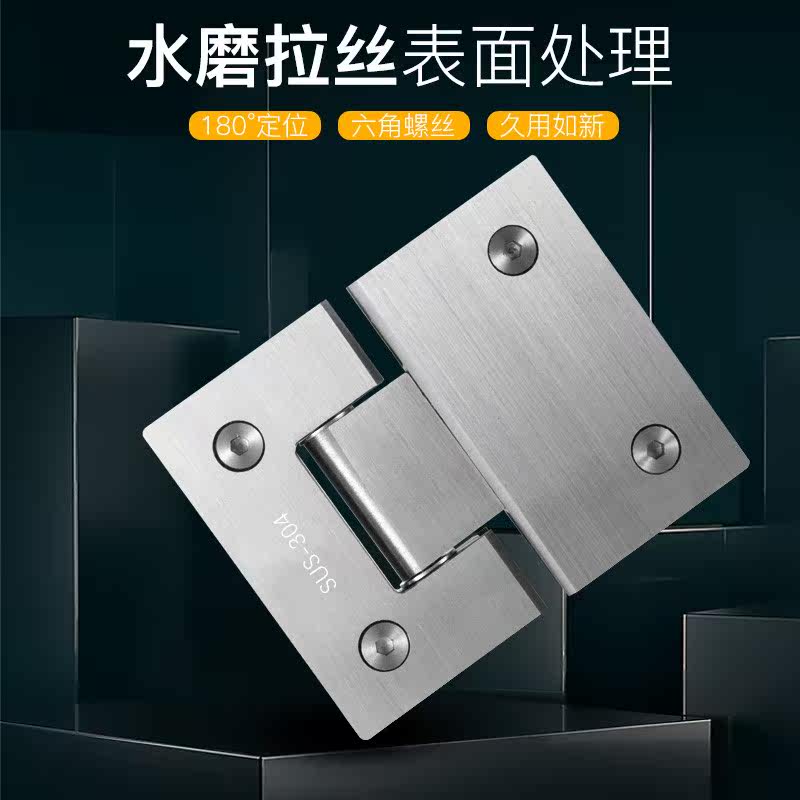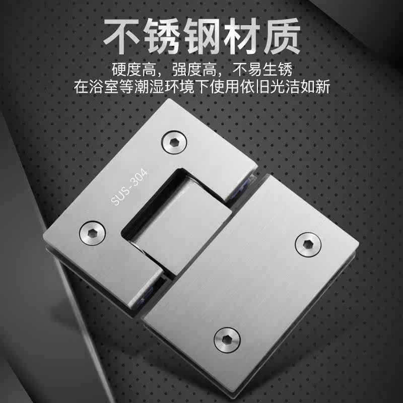 Thickened 304 stainless steel glass door clip bathroom clip shower room hinge No frame hinged dressing room 180-degree hinge