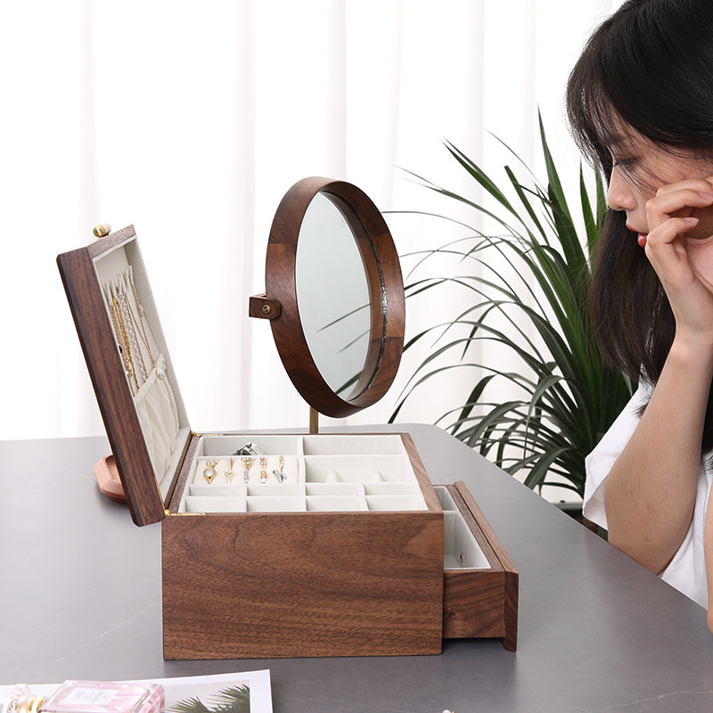 Wooden jewelry box Luxury Japanese-style black Walnut wood storage box Hand decoration women's box Dressing box Necklace jewelry box storage
