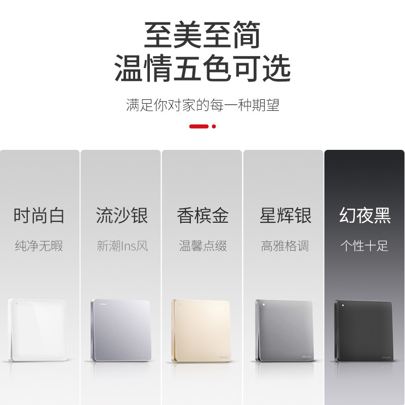 Delixi official flagship store open multi-control switch socket 86 type midway three-control switch large panel black