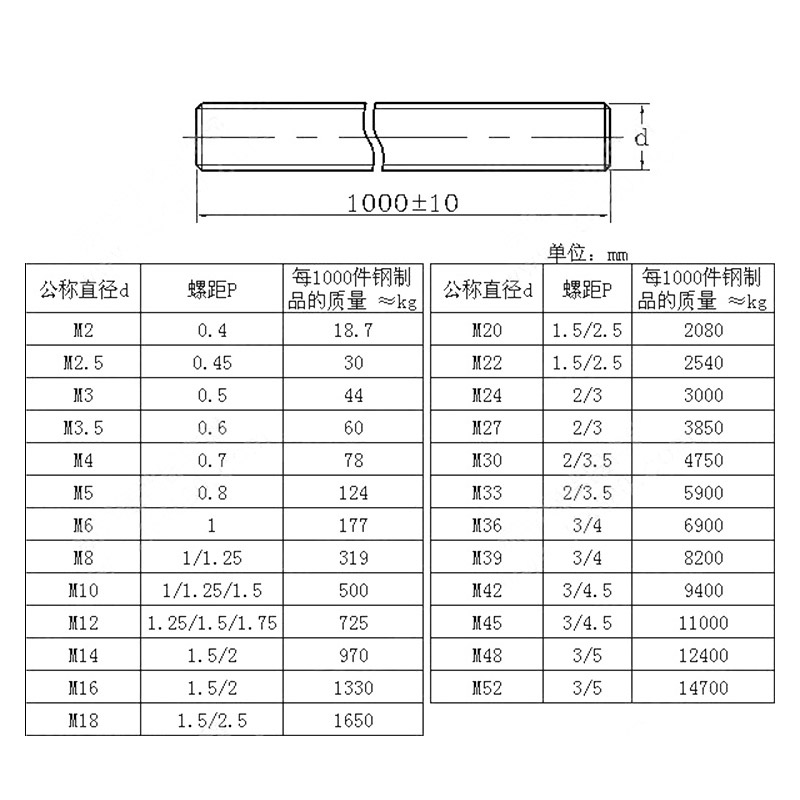 M4 * 1 m M5 * 1 m M6 * 1 m M8 * 1 m M10 * 1 m 1 m M12 M14 * 1 m M16 * 1 m M18 * 1 m M18 * 1 m M16