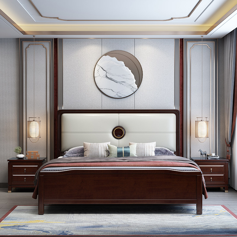 New Chinese solid wood bed (wood back)New Chinese bed (wood back) Bedside table*1New Chinese bed (wood back) Bedside table*2New Chinese solid wood bed (leather back)New Chinese bed (leather back)