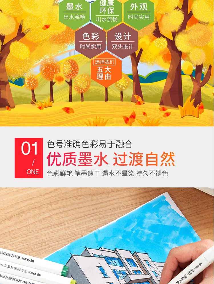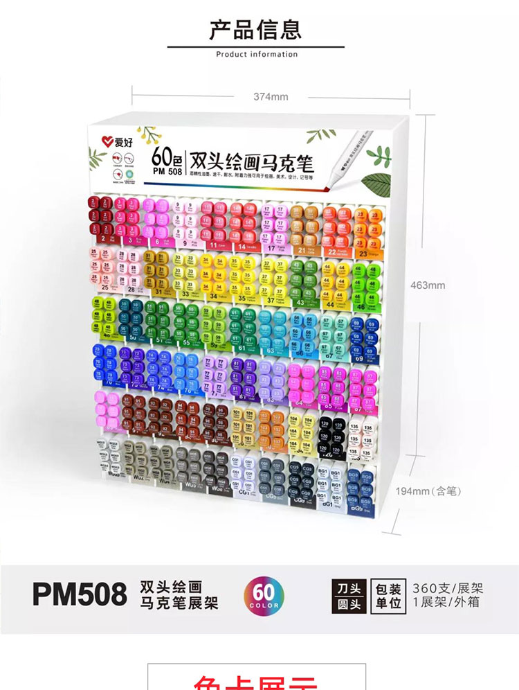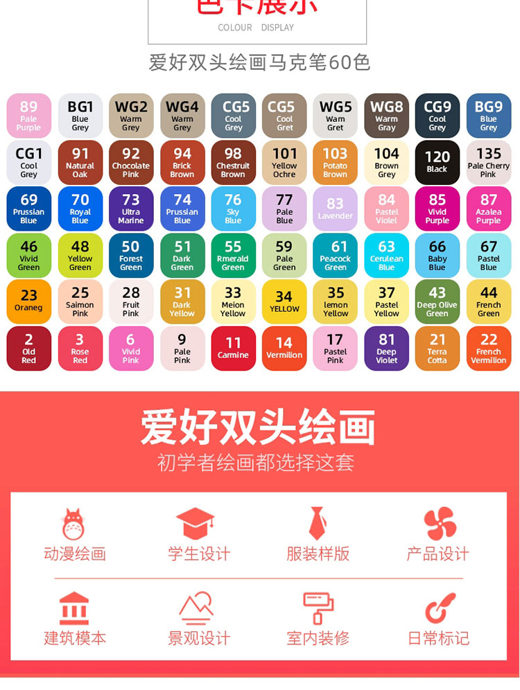 Hobby 60-color monochrome complementary color marker pen double-headed alcohol oily round head oblique head set oily pen monochrome