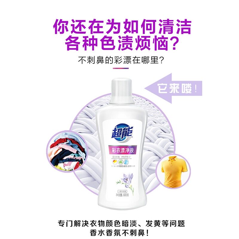 Super-power clothing color clothing bleaching liquid 600g*1 bottle to remove stains for household special color clothing reduction detergent