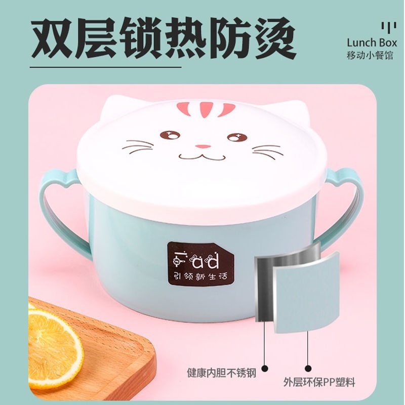 Pink Meow Star Bowl Liner 201-T (Send Spoon Fork) Pink Meow Star Bowl Liner 201 Cutlery Three Sets I Pink Meow Star Bowl Liner 201 Cutlery Three-piece Blue Meteor Star Bowl
