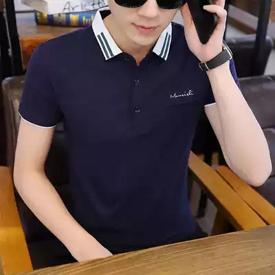 Amuda Korean trend short sleeve polo shirt men summer embroidery lapel slim men's T-shirt summer casual interior