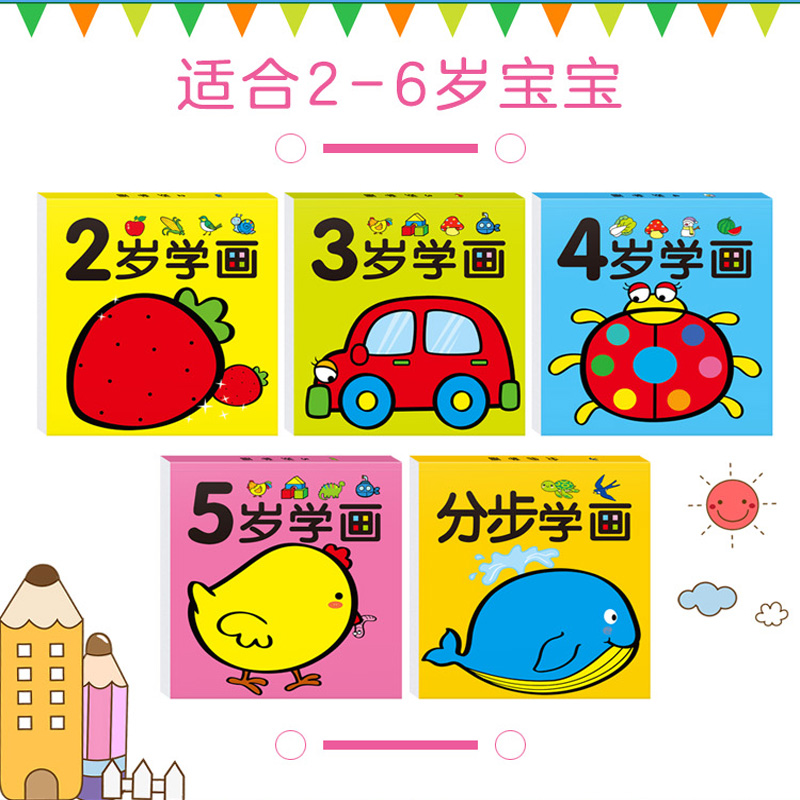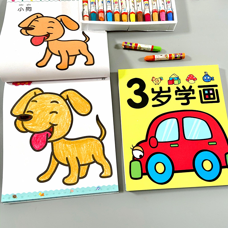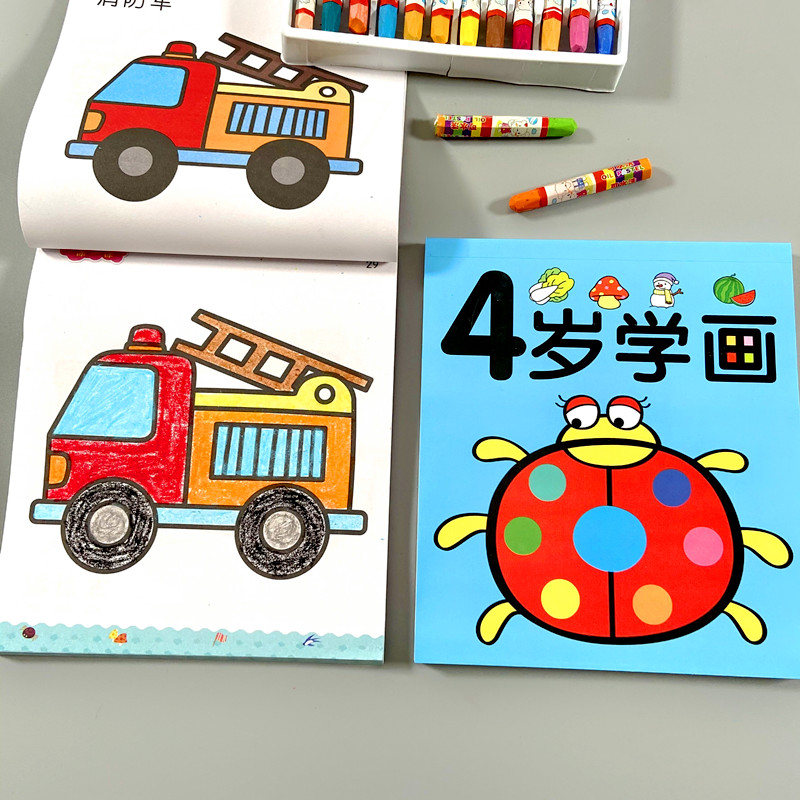 5 years old learn painting-1 book 120 pages (with 12 color oil pastels) 4 years old learn painting-1 book 120 pages (with 24 color oil pastels) (two books) 3 years old 4 years old with 24 color oil pastels