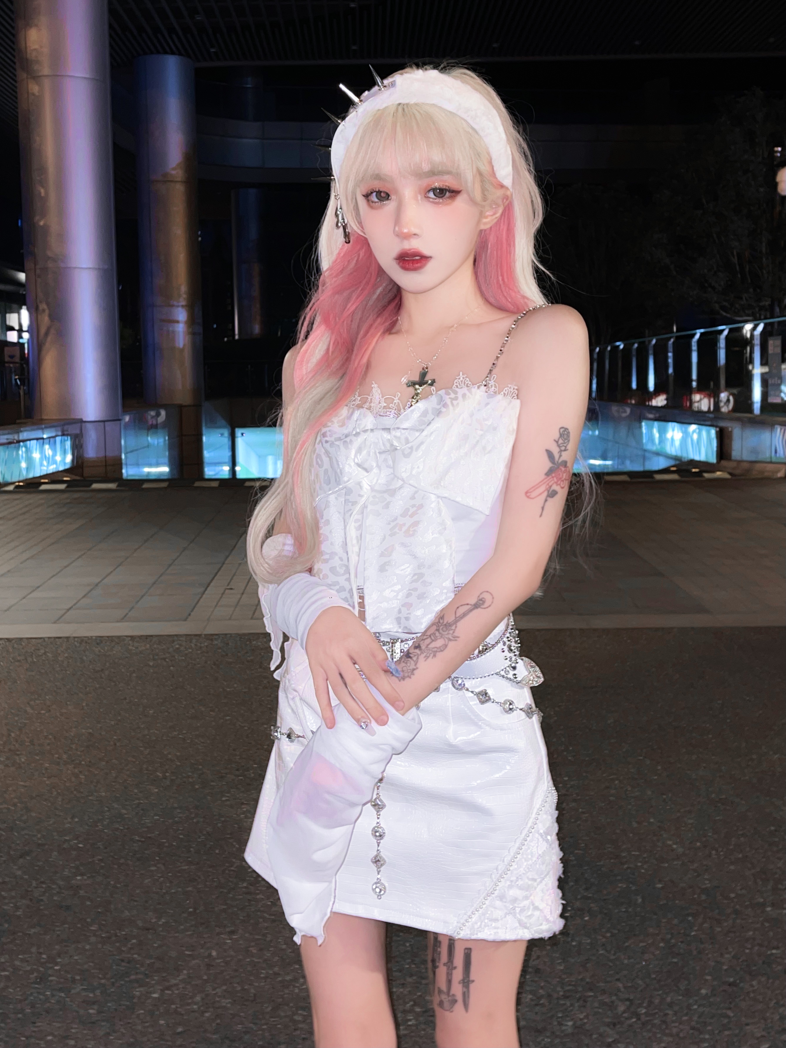 (spot) DIET GRRRL butterfly knot white vest spring autumn beating bottom inner lap harness spicy girl sexy blouse