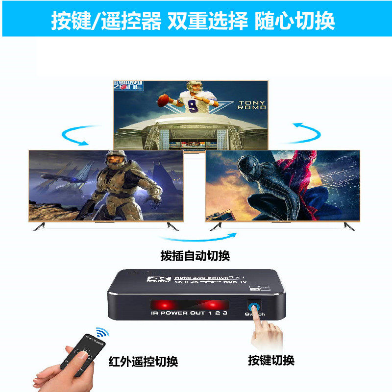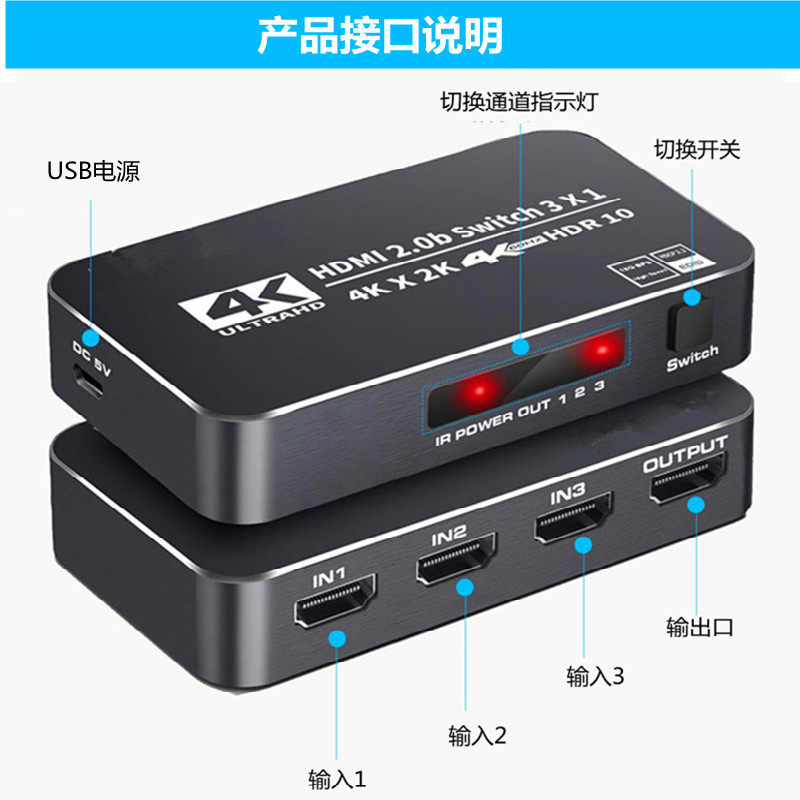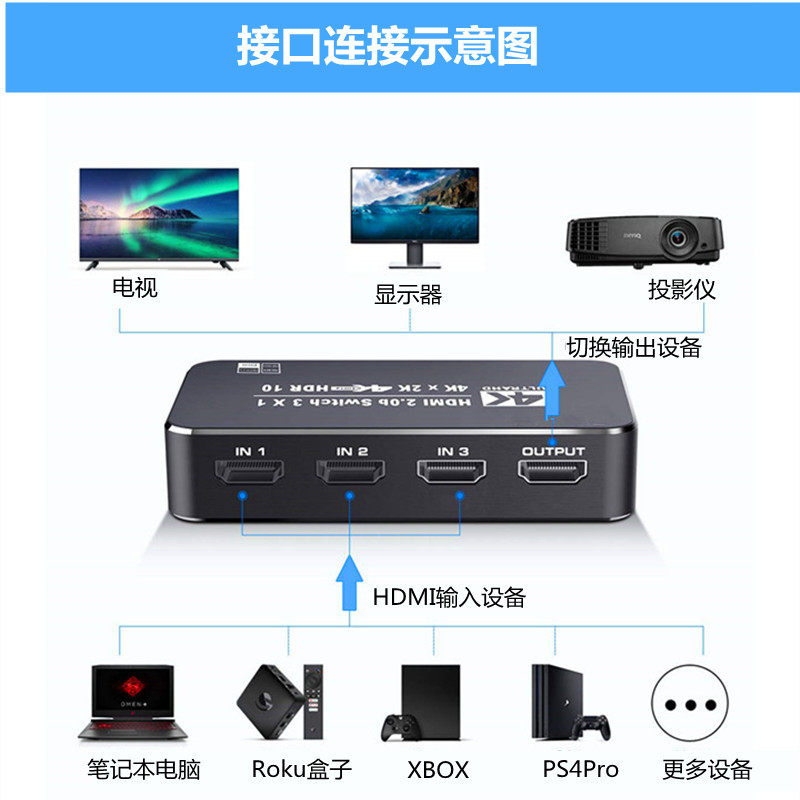HDMI2 0 switcher 3 in 1 out laptop 4K60HZ converter HD video smart display