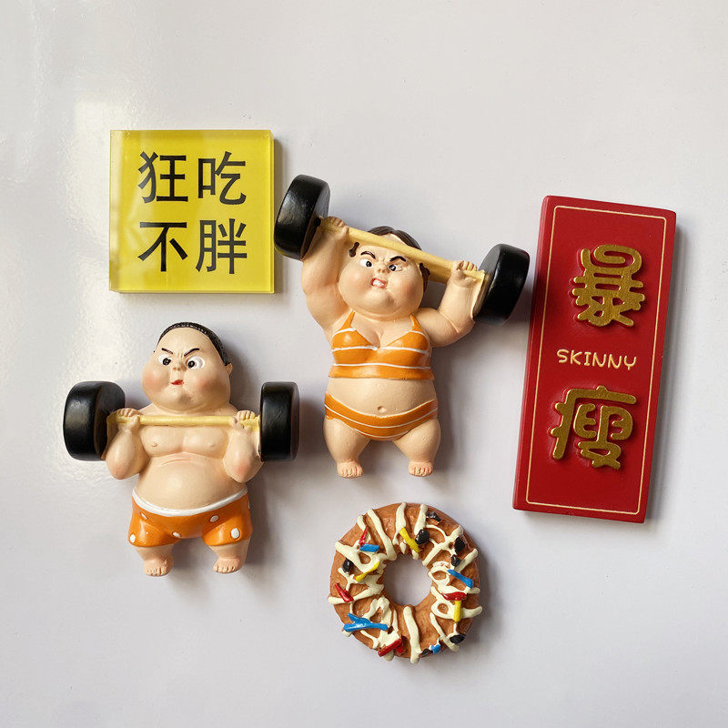 (4) Creative 3D Magnetic Magnetic Sticker Weightlifting men and women Resin Refrigerator Home Patch Whiteboard Photo Wall Magnet