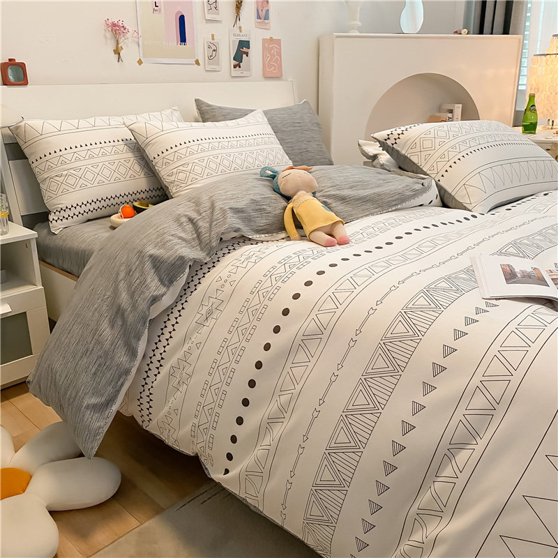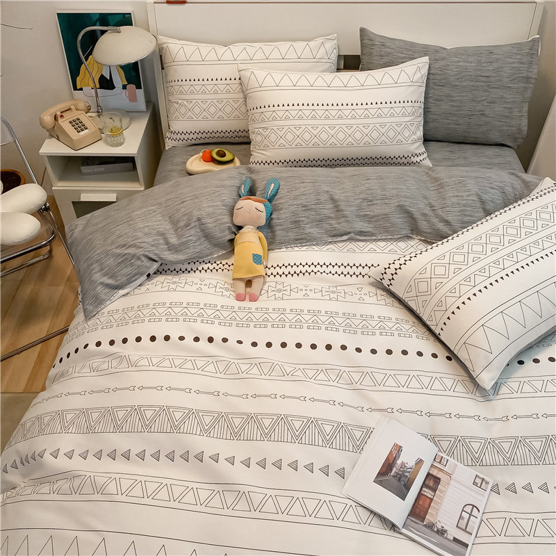 Nordic wind cotton bedding supplies four pieces of simple cotton simple luxury sheet four - piece set of boys' dormitory three - piece set 4