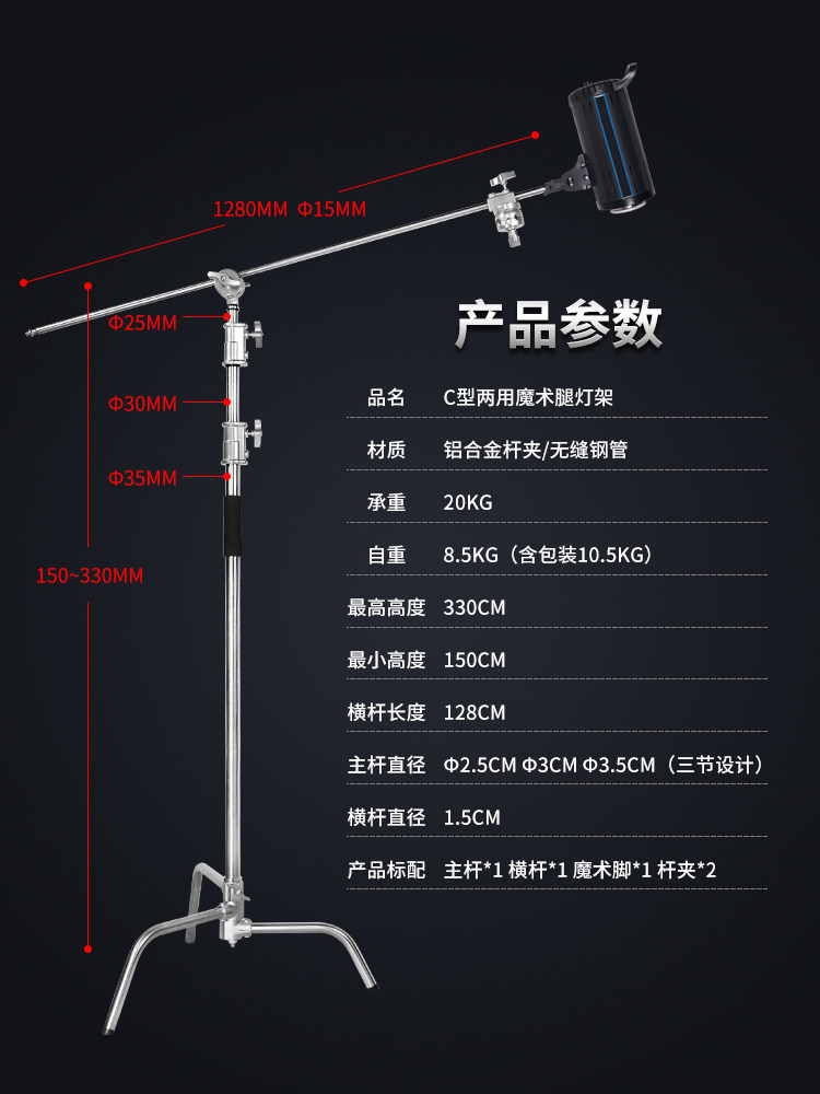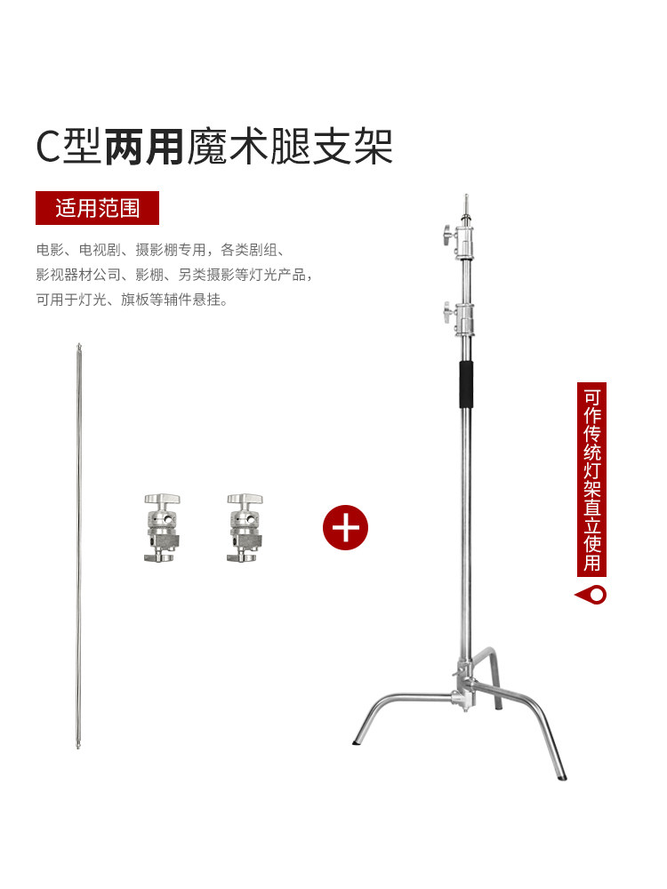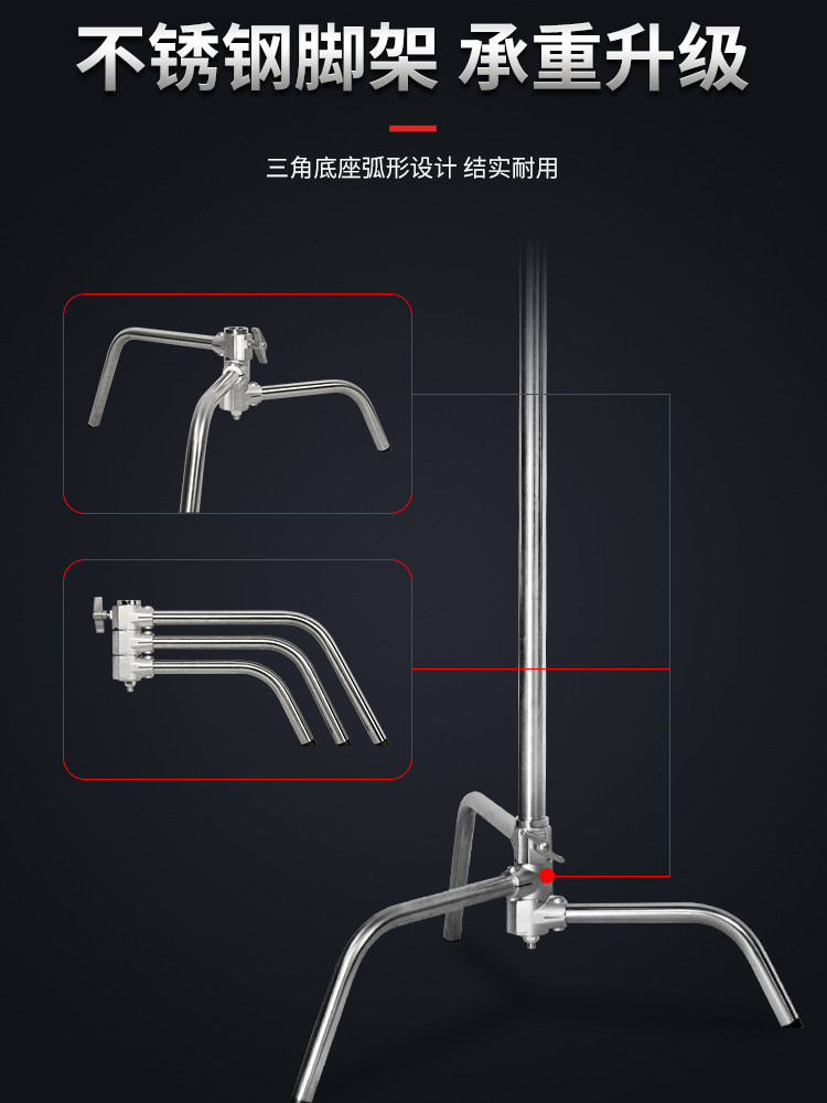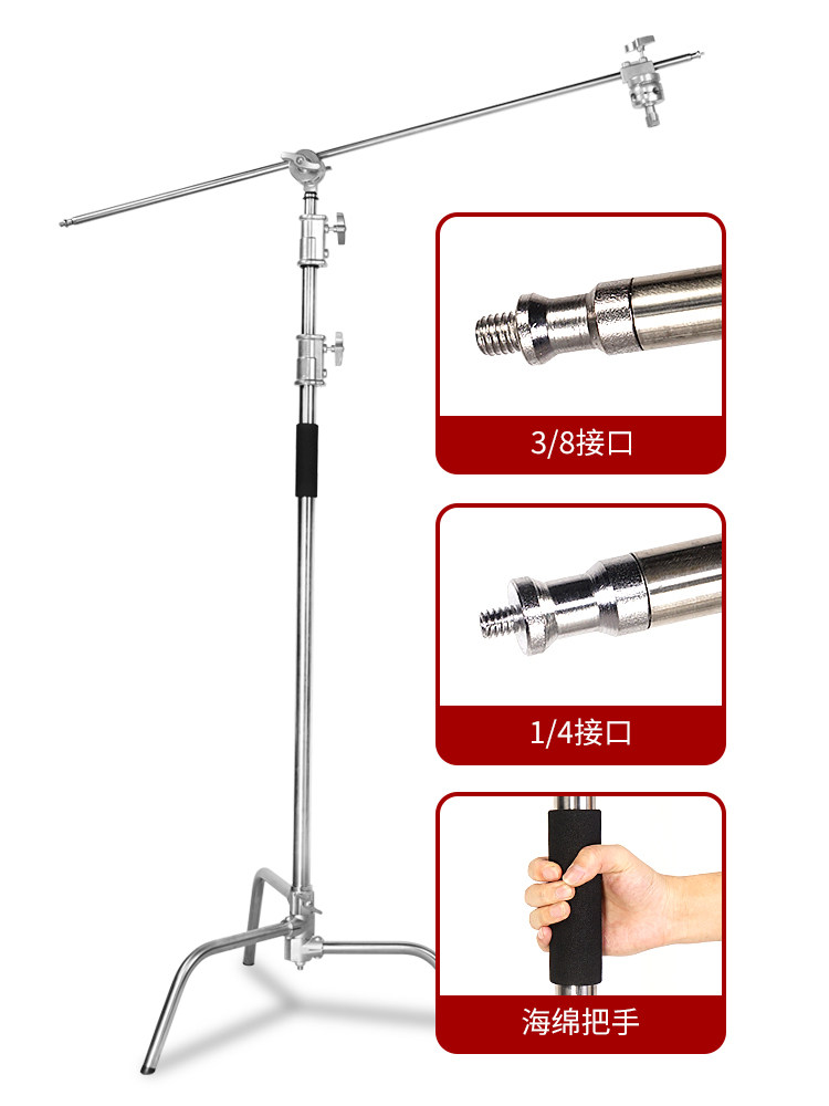 Photography magic leg light stand C-type 40-inch stainless steel tripod professional film and television flash light stand outside the camera cantilever support cross-bar top light stand reflector light stand cross-arm stand equipment accessories