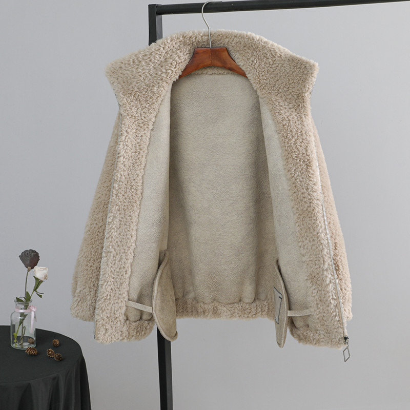 New style wool sheep shearling fur one winter coat lamb wool stand-up collar young style fur particle coat women