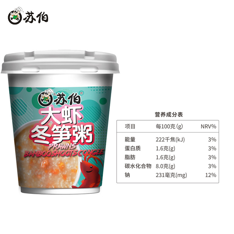 Suber fast-food porridge 240g * 3 cups of winter asparagus shrimps Rinpitan Lean Meat Porridge Freeze-dried Ready-to-eat Food Décor Breakfast
