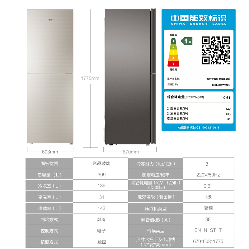 Haier Refrigerator Two doors flagship air-cooled frost-free first-stage frequency conversion large frequency frequency freezer official store