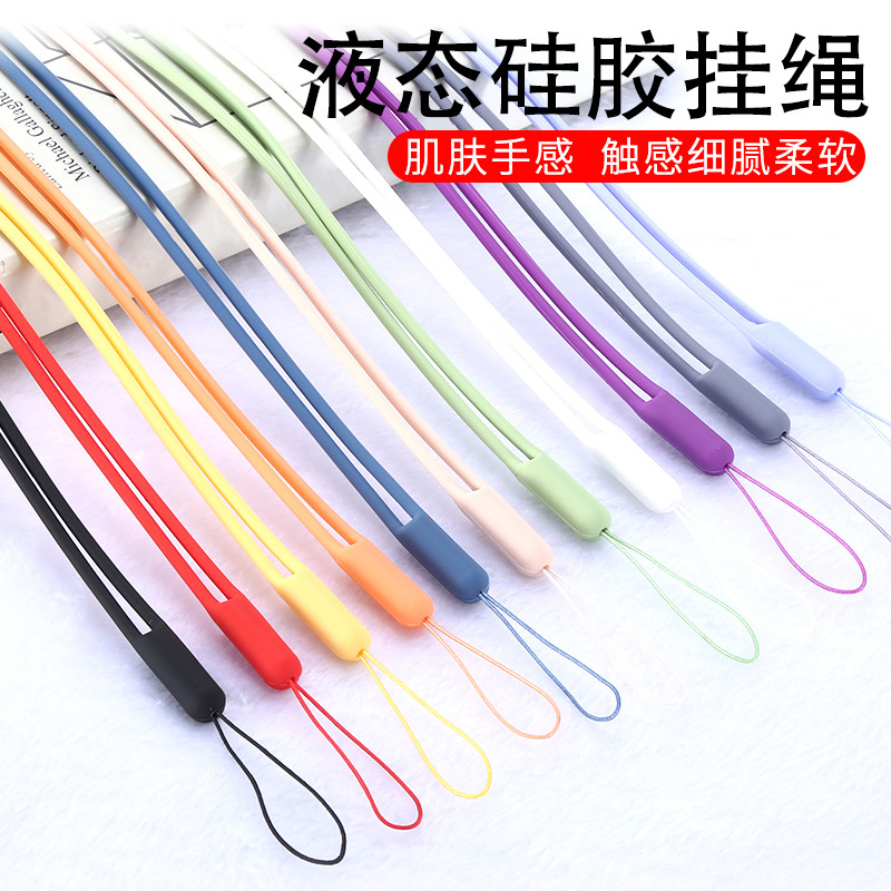 Mobile phone hanging rope shell hanging neck rope short Wrist Sling Wrist Liquid Silicone Chain Anti-Lose Rope Short Hanging hand anti-fall female male net red hand rope U disc with child key water cup Apple paragraph width