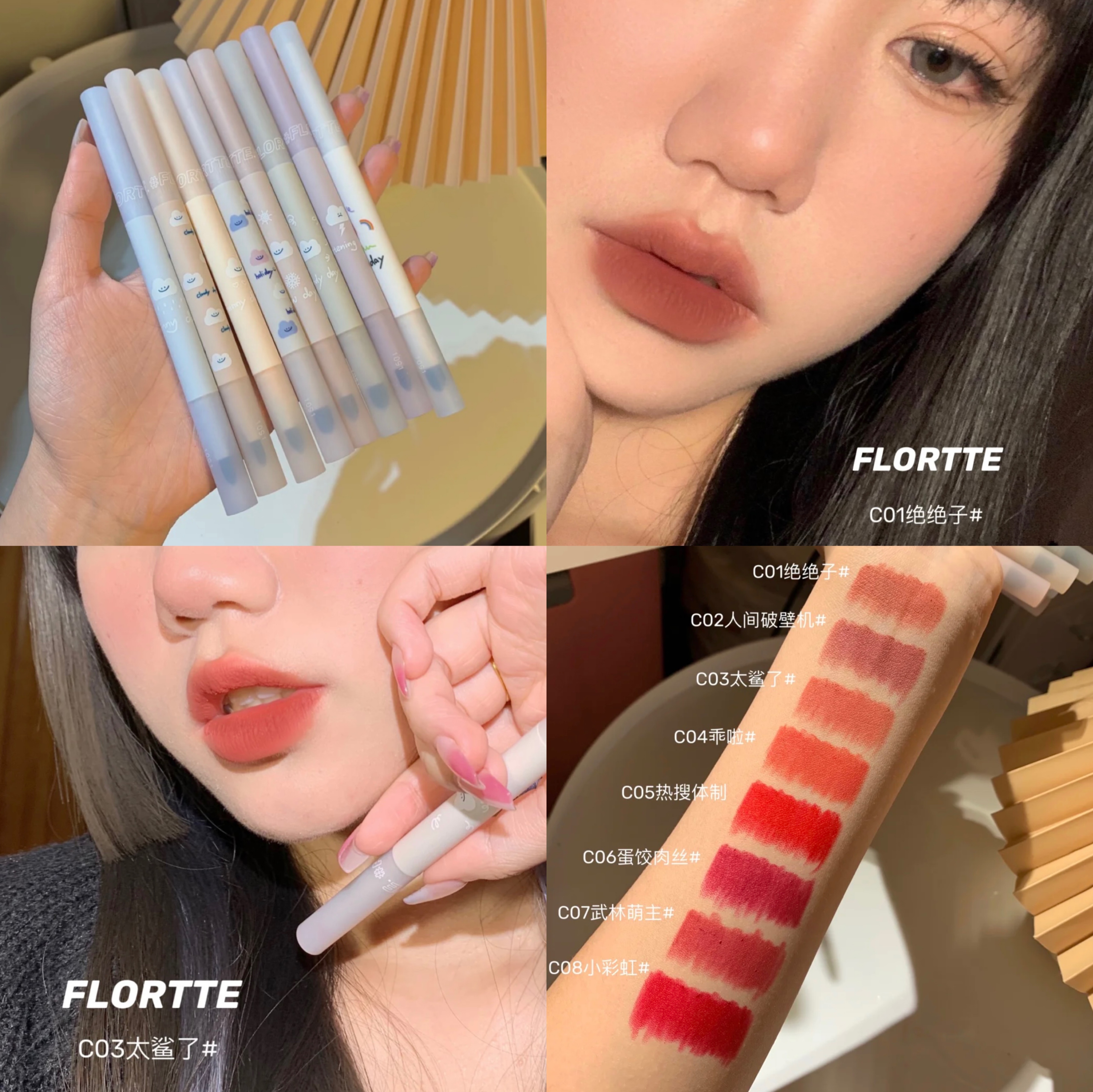 New products | FLORTE flower Loliah Mist Lip pen Double head Fog Face Matt Lipstick Pen Lipstick Thread not stained with cup