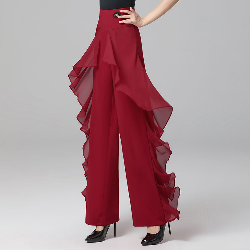 Danba Luo Gitba pants Women's pants Latin dance practice pants Ruffle wide leg dance pants Modern dance pants thin models