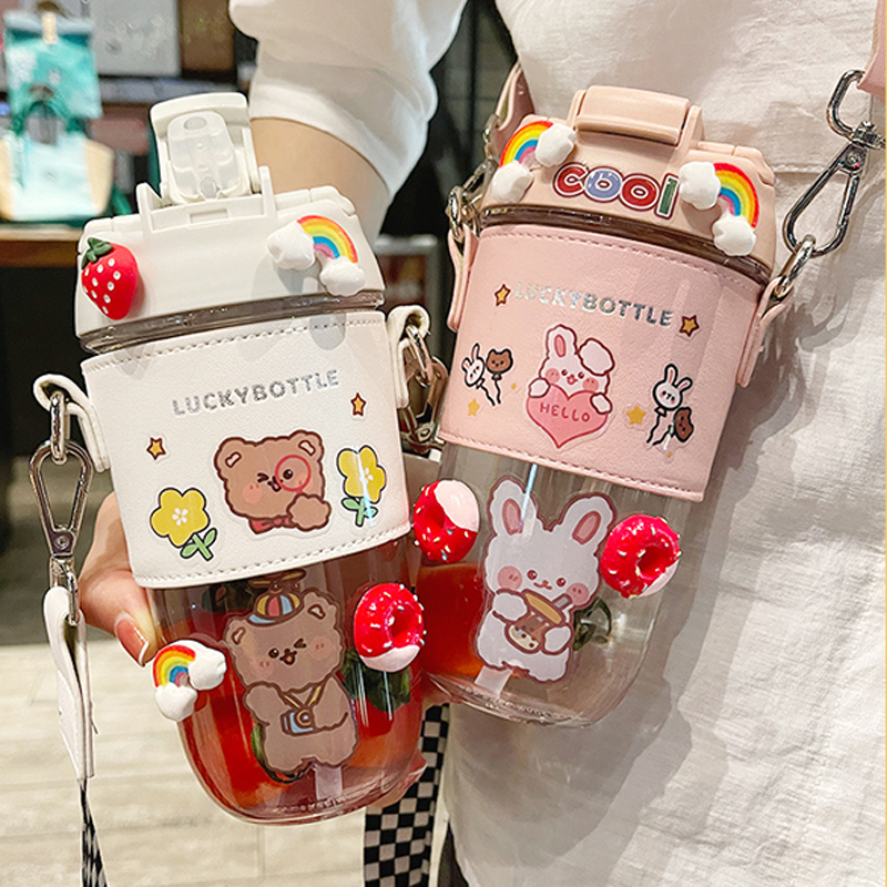 Cup women's portable summer cute student tritan portable water cup Straw girl ins high face value plastic