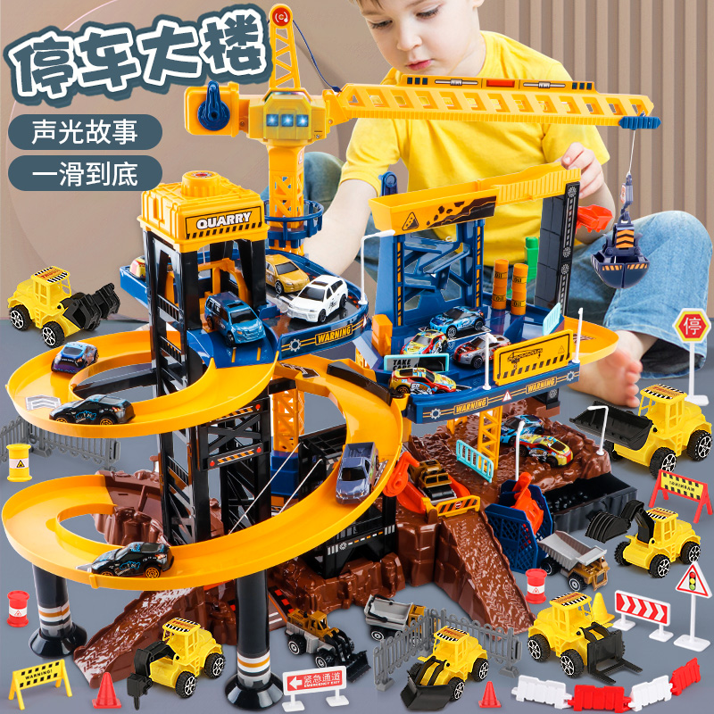Send 32 gift packages (4 floors of gift boxes version) electric car building-with 14 car double track courtesy box version (electric race track race speed version parking lot) with 16 car gift package double track gift box version (electric