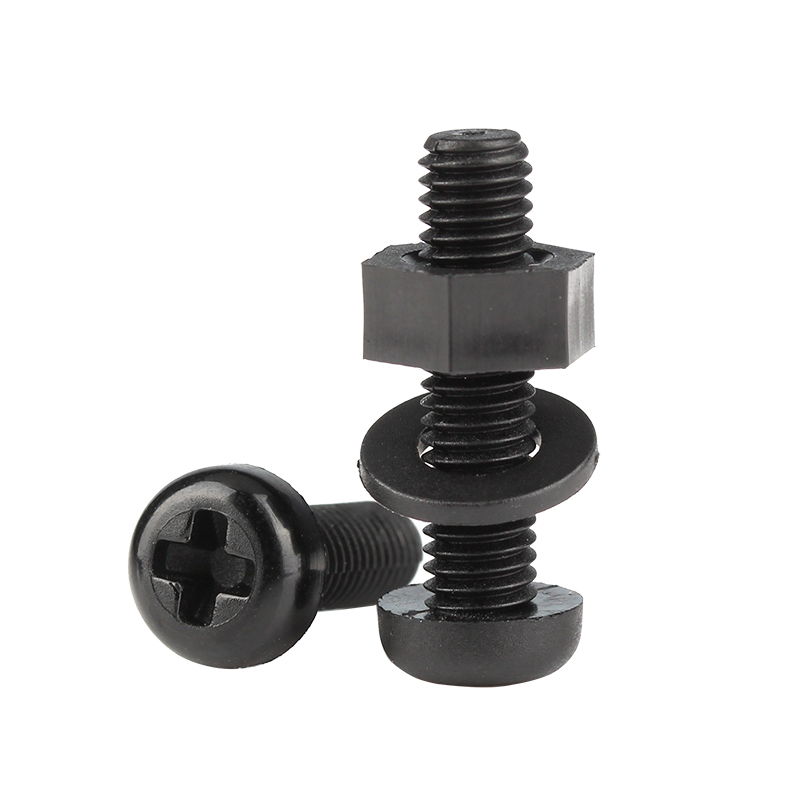 Black round head nylon screw three combination